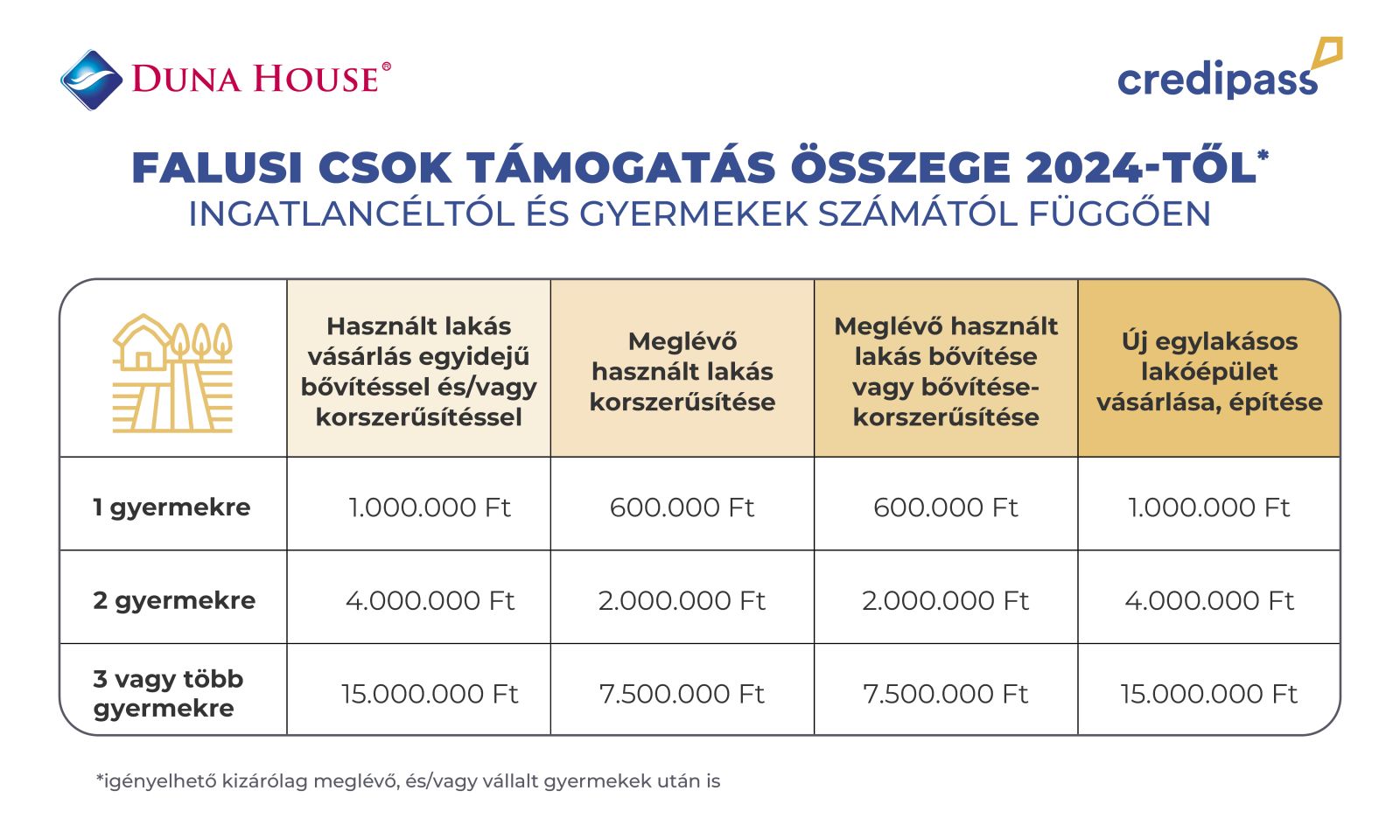 Idén januártól 2 630 preferált kistelepülésen érhető el a Falusi CSOK lakástámogatás, amely teljes illetékmentességet és az eddiginél magasabb támogatási összegeket jelent az otthonteremtést tervező párok, családok számára, ráadásul mellé áfa-visszatérítés is jár.
